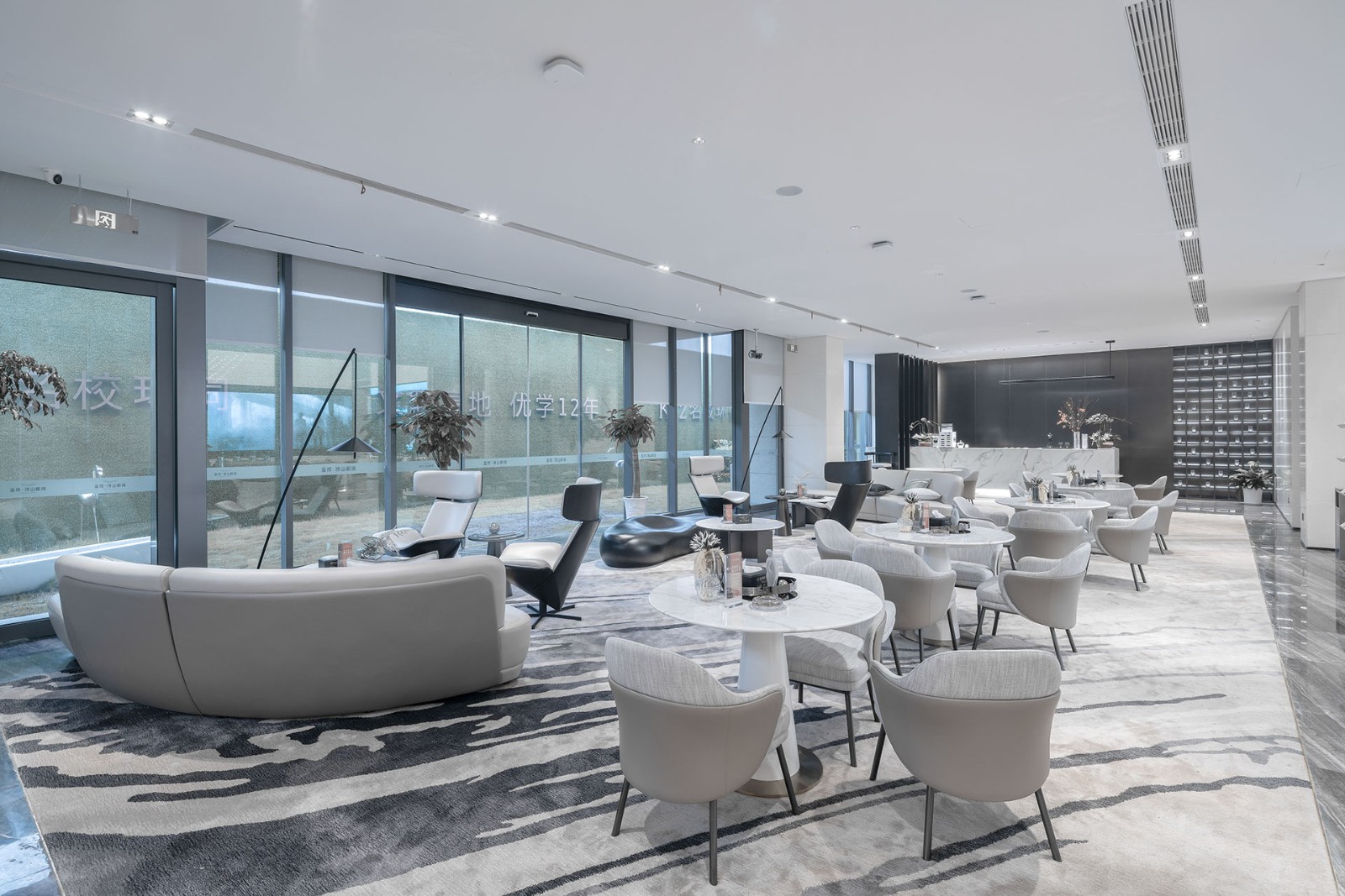 洽谈区座位对称排布,疏落有致,清简的当代美学缓缓萦绕。木色伴随温润的色调,以轻盈静雅的质地,使人文气质悄然融入空间,让自然与灵魂展开一场细腻而自在的对话。